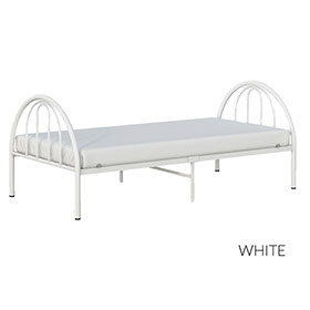 • Durable finish wipes clean easily – Headboard, footboard, full metal slat mattress support included – Box spring or bunkie board not required – Quick and easy assembly with necessary tools included – Fits a standard twin sized mattress (not included) – Maximum weight capacity of 300 lbs.