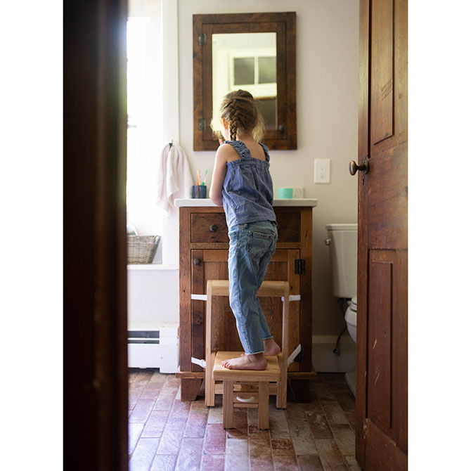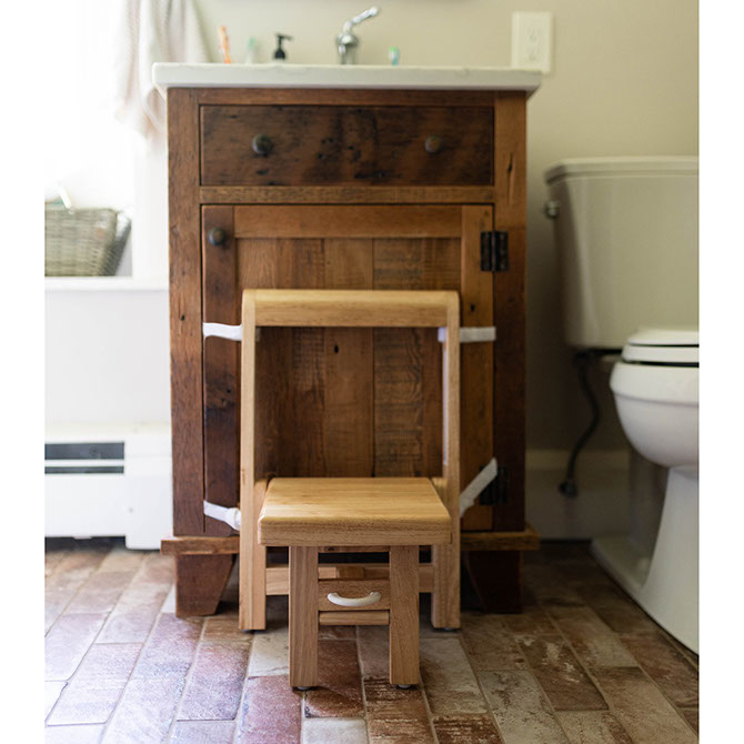 Empower your toddler and save space with the Busy KidsTM Fold ‘N Store Step Stool! This sturdy, solid wood, flat-folding stool is the perfect addition to a toddler’s bathroom or kitchen routine. Give them a place to participate in washing their hands, brushing their teeth, food prep, and much more!