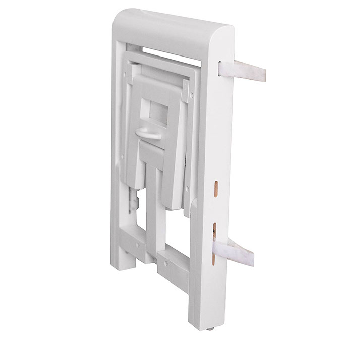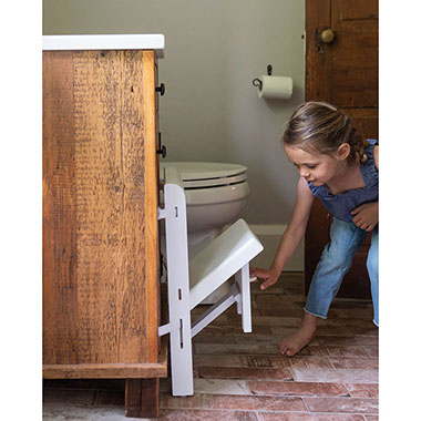 The Fold ‘N Store Step Stool is designed to attach to most kitchen cabinets and bathroom vanity doors while still allowing access. No need for a step stool to get in your way. When not in use, simply lift the step and it folds away! For children ages 2-6, holds up to 75 lbs.