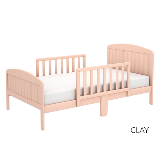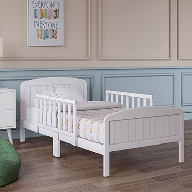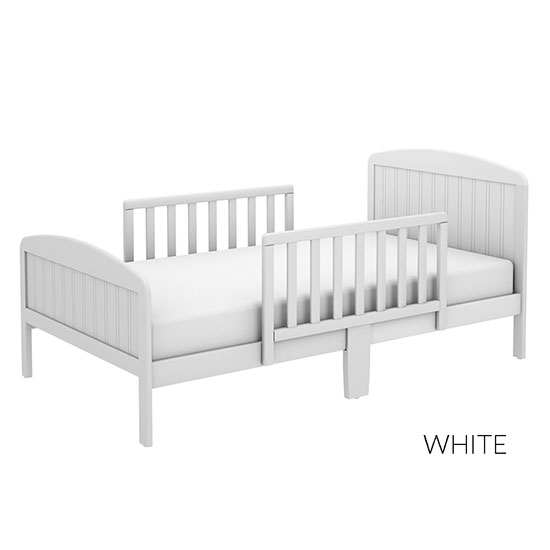 • The Harrisburg Toddler provides an exciting next step for your little one with a simple design that emphasizes safety. Two large side rails help prevent your child from rolling out of bed, while providing enough space for them to climb in and out independently.